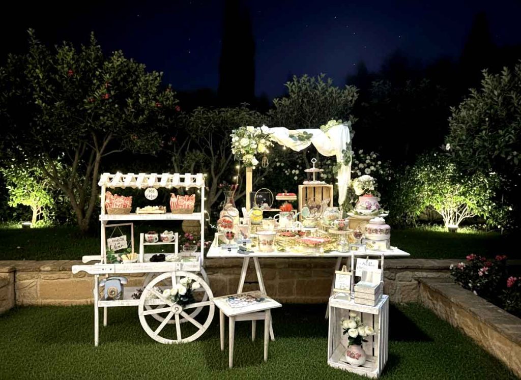 Si os apetece un baile bajo las estrellas, podréis disfrutar de nuestra discomóvil en los jardines, rodeados de naturaleza, buen ambiente y una iluminación mágica que convertirá la noche en un recuerdo inolvidable. Ideal para aprovechar el buen tiempo y dar un toque especial a la parte más festiva del día.