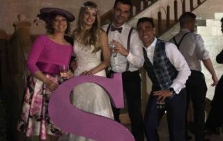 El estilo romántico y moderno se reflejó en cada detalle. Los novios decidieron dejar la decoración de la boda en manos de Verónica (de Castillo Bonavía). Se escogió el color morado como color estrella para la decoración del espacio, creando así el ambiente perfecto al gusto de los novios. Y no faltaron detalles únicos y personalizados: como las letras XXL con las iniciales de los novios, que se colocaron en los jardines, la elección de las flores perfectas para el estilo de la boda, etc. Sin dejar al azar ningún detalle, como por ejemplo la decoración de las mesas y sillas de la zona del baile ¡que también se habían vestido en morado!