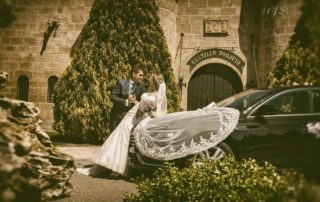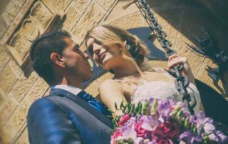 La Iglesia de San Pedro Mártir de Verona (Pinseque) fue el lugar elegido por los novios para la ceremonia y el Castillo Bonavía, el lugar para celebrar su amor y compartir su felicidad con todos sus invitados.