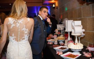 Tarjetas de agradecimiento para los invitados por querer compartir con ellos su felicidad en el día más especial, una espectacular candybar repleta de chuches y tartas elaboradas desde EE.UU y ¡dulces de todo tipo para agasajar a los más golosos!