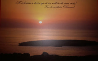 Una boda emotiva y muy romántica, donde el lugar donde se declararon un año antes cobró especial protagonismo también en su gran día: el atardecer en el Faro de Cavalleria (Menorca). Un paisaje que inspiró cada detalle de la boda como la decoración del banquete, donde no faltó un lienzo con ese fabuloso paisaje y una preciosa frase: “Te volvería a decir que sí un millón de veces más”; las mesas numeradas con fotografías de diferentes calas de la isla; un sello personalizado que representaba una pedida de mano al atardecer y que selló cada una de las invitaciones y tarjetas de agradecimientos (de Eventos Ilustrados).