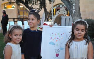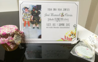 No faltaron tampoco detalles personalizados con los que los novios quisieron sorprender a sus invitados, como fotografías dedicadas especialmente para ellos, y regalitos como botes de miel y espejitos para ellas y botellas de vino para ellos. Un libro de firmas y un lienzo donde cada invitado dejó su huella para los novios, ¡un bonito recuerdo que los novios podrán conservar de su gran día!.