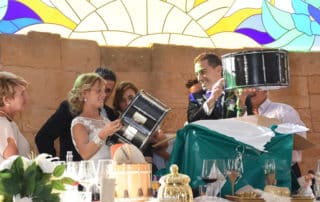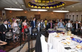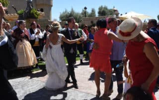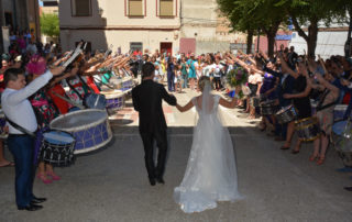 Así pues, no faltaron tanto a la salida de la Iglesia como durante toda la celebración de la boda, bailes de jota y toques de tambor con los que sorprender a los novios y ¡hacerlos participar por sorpresa!.