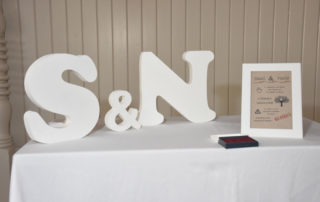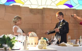 Fue una boda de estilo rústico y vintage y con muchísimos detalles personalizados y handmade que aguardaban en el Castillo Bonavía: como el libro de firmas (hecho por la novia con la técnica scrapbooking); un árbol de huellas hecho por la sobrina de la novia, Maria Sanz ¡toda una artista del dibujo!); letras de madera; una candy bar de estilo rústico, preparada también por los novios; y las invitaciones diseñadas por la novia acordes también con el estilo de la boda.