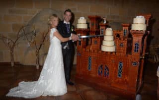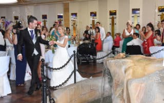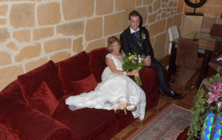 Nuria y Santiago eligieron el Hotel Castillo Bonavía para celebrar junto a sus invitados tanto el banquete de bodas como la fiesta posterior, donde triunfó entre sus invitados la pulpería del Castillo (con showcoocking y buffet de pulpo) y también el riquísimo solomillo.