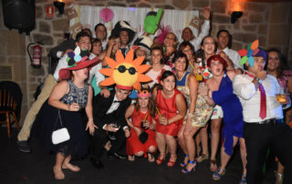 Para los invitados no faltó tampoco un photocall de lo más divertido, con gorros chulísimos y enormes de goma espuma y decorado con cortinas a modo de fondo y banderines.